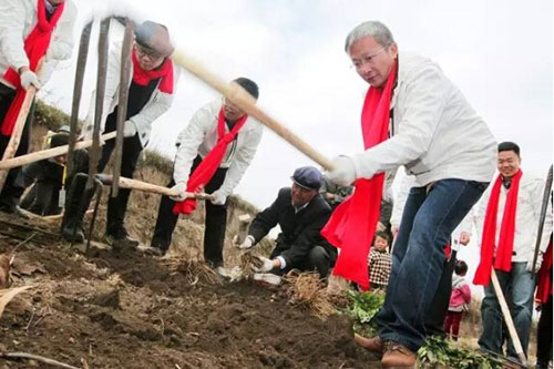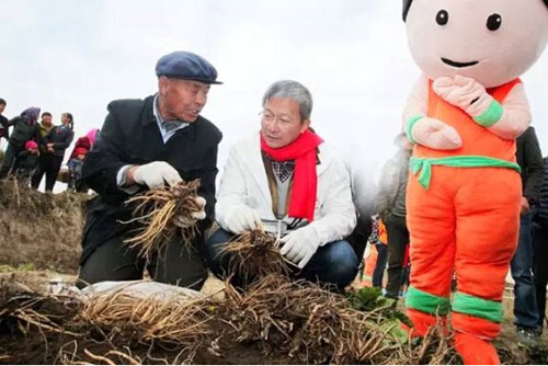 (黄海波教授亲自拿起锄头,在岷县无限极当归种植基地挖起当归)