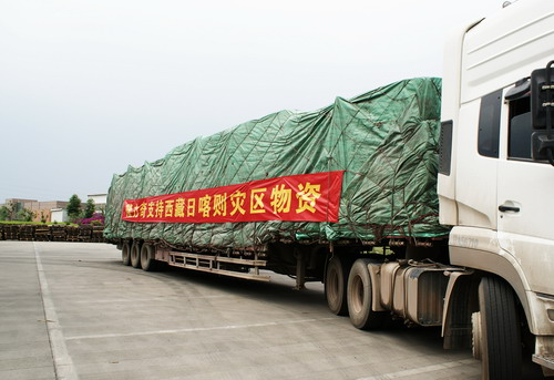 2015年5月21日,隆力奇52万元救灾物资运往西藏日喀则地震灾区