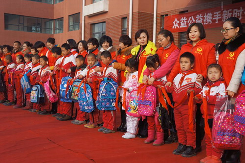 内蒙古分公司继7月3日组织“中国梦 国珍情”新时代走进赤峰特校大型公益捐助活动后,12月11日,“为爱起航助学活动”在呼和浩特市新城区毫沁营小学隆重举行。呼和浩特市众益公益帮扶中心理事长许娟、新城区毫沁营小学校长及600余名师生、国珍0537健康生活馆百余名新时代爱心人士共同参加了此次爱心捐助活动。活动在庄严的国歌中拉开了序幕。少先队员首先为各位嘉宾敬献了红领巾,国珍0537健康生活馆执行店长三星级领导人王钰涵、贾冉宇伉俪和百余名新时代爱心天使对留守儿童进行了“一对一、一帮一”长期助力帮扶爱心资助。短短几分钟,留守孩子都找到了自己的“新时代新家”,深刻体会到了新时代家人的温暖和关爱。看着留守儿童感动的眼神和温暖的笑容,“国珍爱心爸爸妈妈”们都紧紧抱住了自己的“孩子”,亲吻了他们的脸颊。新时代人还现场为留守孩子捐赠了书包、书籍、运动鞋、学习用品、体育用品、过冬棉衣和日用品等。毫沁营小学在图书馆专设了“国珍爱心书屋”专区,孩子们拿到捐赠物品后都爱不释手,脸上绽放出灿烂的笑容。为了感谢爱心天使的无私捐助义举,呼和浩特市众益公益帮扶中心和毫沁营小学制作了“汇聚真情 奉献爱心”锦旗。小学安校长代表毫沁营小学六百多名师生,向慷慨解囊、大爱无私的新时代健康产业集团国珍0537健康生活馆的爱心天使们表示最诚挚的感谢和最崇高的敬意,全校学生将更加努力学习、健康成长,以优异成绩回报爱心人士,并祝新时代健康产业集团不断发展壮大,创造辉煌的业绩。随后,国珍0537健康生活馆执行店长三星级领导人王钰涵号召在座的新时代人积极弘扬中华养生文化,宣导健康的生活理念,践行新时代人的“责任与使命”,通过关注留守儿童,积极参与社会公益事业、回报社会,把爱心传递和播撒到社会的每一个角落,并祝愿孩子们健康成长、好好学习、快乐向上!学生代表致感谢词表示,一定要好好学习、天天向上,以回报爱心人士的爱心资助和无私奉献,为社会添砖加瓦、贡献自己的力量,并祝福 “国珍爱心爸爸妈妈”好人一生平安、身体健康、阖家幸福。最后,孩子们带来了《弟子规》诵读表演和合唱《明天你好》,新时代人也进行了手语操表演,现场掌声不断。此次公益捐助活动得到了内蒙古民政局、内蒙古教育局、呼和浩特市众益公益帮扶中心等单位的大力支持,《北方新报》、《呼市晚报》、内蒙古电视台《新闻直通车》栏目等诸多媒体对公益捐助善举进行了报道。