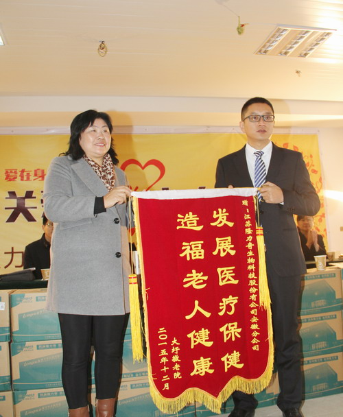 包河区大圩敬老院院长方庆珍向隆力奇赠送锦旗