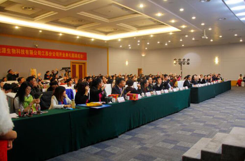 2015年12月13日,四川福能源江苏分公司开业典礼盛大举行。公司执行总裁廖磊先生、常务副总裁尤艳女士、销售副总裁沈鹏先生、公司教育顾问张健先生亲临现场,共襄盛举。江苏分公司顾坚钧经理、一星董事王海芹女士以及福能源优秀家人们荣耀入场,约300人共同见证江苏分公司成立的辉煌时刻。