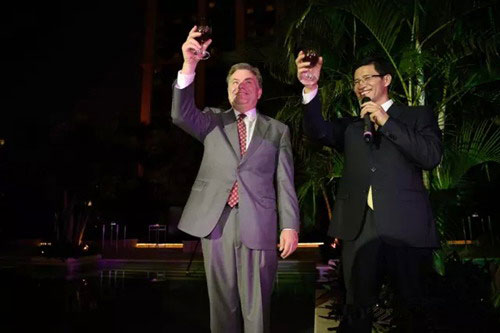 大溪地诺丽公司创始人约翰·华士渥先生与大溪地诺丽中国公司总经理马春林先生共同举杯,与伙伴们共享盛宴。