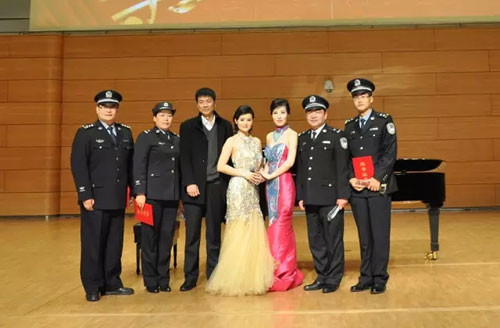 长青中国王芳、主持人丁丁、法制日报青岛站站长姜东良和获奖公安干警合影
