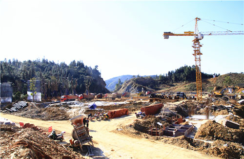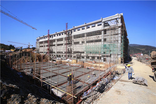 在热火朝天的施工场地,工人们正在日夜加班,争取早日把产业园建成