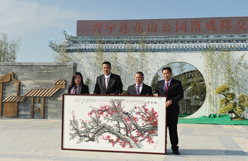 随后,康美药业董事长、总经理马兴田,副董事长、常务副总经理许冬瑾伉俪向揭阳市委常委、普宁市委书记黄耿城,普宁市委副书记、市长陈群峰移交莲花山公园管理牌匾。黄耿城书记、陈群峰市长代表普宁市委市政府回赠马兴田、许冬瑾伉俪丹青《报春图》。