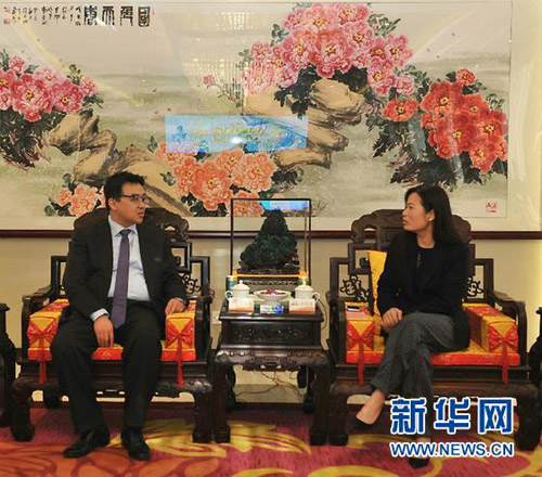 王家昆(左)与康美药业副董事长、常务副总经理许冬瑾会谈