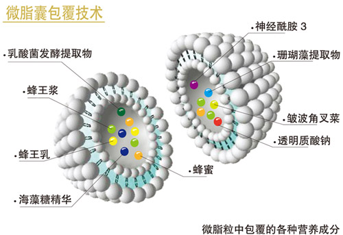 采用与肌肤细胞结构相同的脂质成分微脂粒作为传输载体,微脂粒所包含的营养能够轻易被皮肤吸收,且快速传送有效护肤成分到皮肤基底层。
