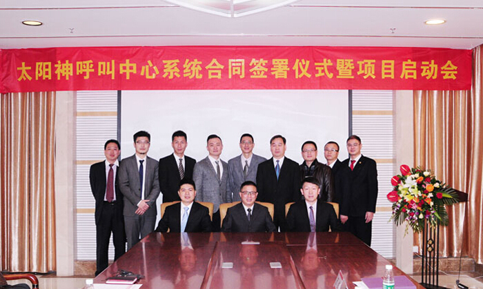 14、2015年12月8日,太阳神呼叫中心系统项目签约仪式成功召开,标志着基于“互联网+”思维的新一代全媒体呼叫中心系统正式进入实施阶段,也意味着太阳神客户服务将再次迈上新台阶。