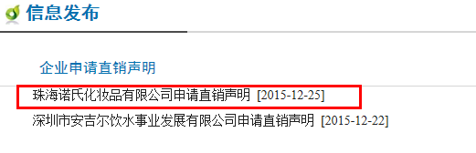 2015年12月25日,商务部直销行业管理信息系统公布珠海诺氏化妆品有限公司申请直销声明。
