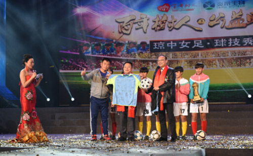 今年7月,一支靠海南琼中黎族少女组成建队才九年的女子足球队代表中国参加了具有“小世界杯”美誉的瑞典哥德堡杯世界青少年足球比赛,所向披靡,七战七捷,荣获U12年龄组的世界冠军。今天,这群南国铿锵玫瑰的代表在冠军教练肖山的带领下,也来到了现场,她们不仅带来了闪耀的冠军奖杯、炫目的球技以及纯朴灿烂的笑容,更为大家带来了“吃苦耐劳,勇于追梦,坚韧拼搏”的琼中女足精神,一路走来,贫困压不住梦想,拼搏孕育着绽放的希望。她们以足球为伴,浇灌着希望的种子;她们以玩命拼抢,书写着绿茵场上的顽强。
