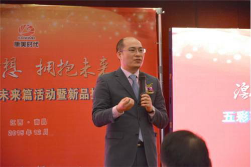 康美时代江西分公司经理陈华平致欢迎词,感谢所有江西的业务伙伴在这一年为康美所做出的贡献,今年江西市场取得了丰硕的成果,其中就包含着所有业务伙伴的心血和汗水。新的一年即将到来,相信赣鄱大地上的广大业务伙伴将更加抖擞精神、卯足干劲,在2016年,成就自我,斩获财富和成功,与康美共同迈向新的辉煌!