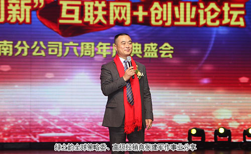 会上,绿之韵集团执行总经理(全球营销中心)张力中致开幕词,他对绿之韵湖南市场六年发展取得的成绩给予了充分肯定,希望湖南分公司在集团的领导下,再接再厉,再创辉煌。从创立至今,绿之韵集团始终坚持“以产品为导向”的长远发展战略,不断强化产业规划,并且今年积极创新推行“互联网+直销”和“体验式营销”模式,大力构建“互联网+大健康+大众创业”新业态。与时俱进的绿之韵集团走在先列,推出了一个颠覆传统微商模式的自由创业平台——天城云商,短短几个月的时间就引爆全国,会员快速增长至数十万,又一批财富新秀应世而生。