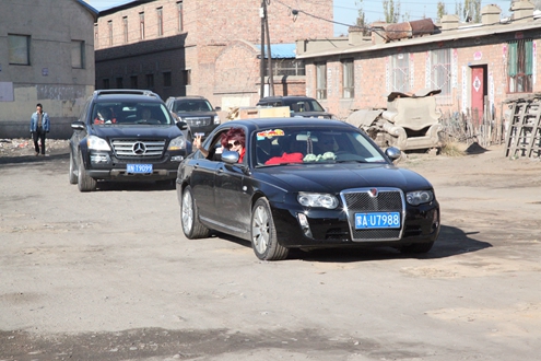 克服困难的路面,尚赫爱心车队驶向小学揭牌活动现场