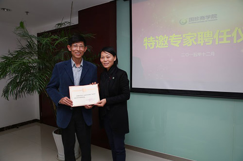 会议最后,公司副总经理张红女士代表公司为岳庆平教授和邢玲玲主任颁发了国珍商学院特邀专家聘书,并与大家一起合影留念。