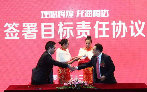 集团董事长焦家良博士与龙润集团营销总裁、云南龙润茶业集团总裁高众签署目标责任协议