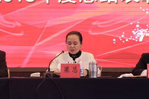 梁总首先感谢全体员工在过去的一年里所付出的劳动和所做出的贡献,并亲切问候员工及家人新年快乐。在工作报告中,梁总对过去一年方方面面的工作进行了梳理和回顾,在总结经验的同时,找出了存在的问题与不足,并提出改正与提高的要求。纪审委总监孙淑燕做了立体库和NC成果汇报,博得了现场热烈的掌声。