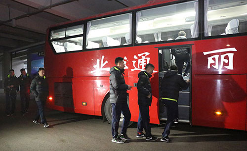 傍晚时分,全体出征人员登上大巴车,奔赴新赛季的冬训之路。大家精神饱满,斗志高昂,表示权健集团投入巨资让全队去“足球王国”训练,享受世界一流的设施和保障条件,全队一定不辱使命,努力训练,在卢森伯格的带领下打出好成绩。