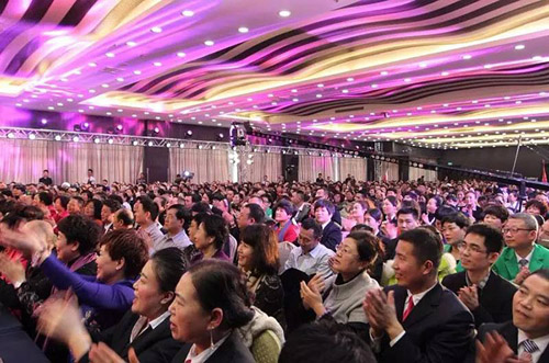 安然公司董事长刘润东先生,营销总裁苏永涛先生,总裁助理兼企划总监刘淑静女士,众合体系领导人杨树才先生、郑长俊先生,天合联盟体系创始人林和平先生率领天合精英团队杨勇、娄秀群、王妙欣、杨淑华、吴琪和近百名五钻经理在激昂、震撼的音乐中和雷鸣般的掌声中步入会场!