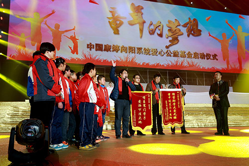 盛典晚会中,康婷·向阳系统创始人孙立华女士、邹立民先生陪同康婷公司董事长刘小兵先生、总裁杨琪女士及向阳系统各体系领导人共同开启了“童年的梦想——中国康婷向阳系统爱心公益基金启动仪式”,标志着向阳系统爱心公益基金正式开启,赤峰市松山区岗子小学和赤峰市敖汉旗下洼中学为此次爱心公益活动的首批资助对象,向阳系统始终追随康婷公司的步伐,将“温暖传递”作为爱心公益理念,一直以来勇于承担社会责任,关爱弱势人群,集结爱心联盟,传播温暖与爱心。同时,我们希望有更多的爱心人士参与到公益事业中来,共同努力为孩子们创造美好明天!一路奔跑,一起向阳!