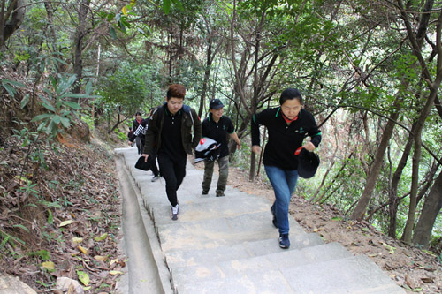 随后,大家争先恐后的往山顶出发,在登山过程中,大家你追我赶的同时,不忘互帮互助,充分发扬了顽强拼搏和团队协作的精神。