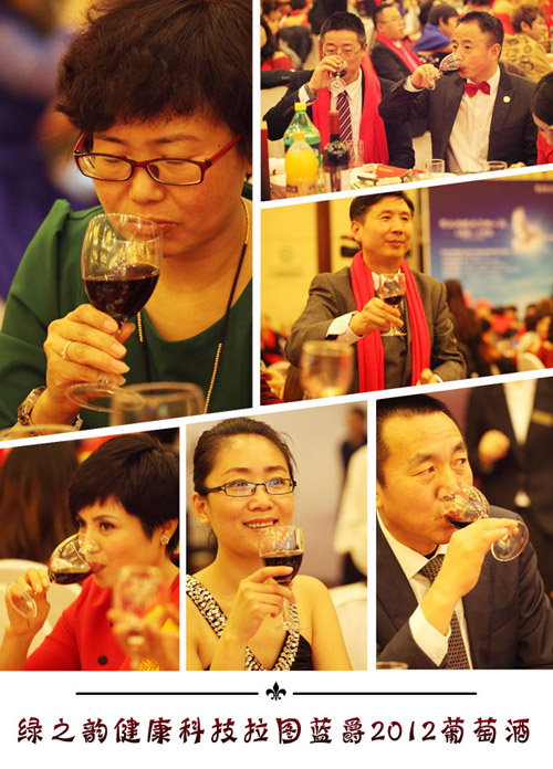 在万众瞩目中,绿之韵集团董事、执行总裁劳嘉携绿之韵健康科技执行董事吕秀玲,南方医科大学副校长熊梦辉,南方医科大学天然植物应用研究中心主任徐文霞,中国市场学会直销专家委员会秘书长、东方国际商学院院长胡远江上台注酒,宣布拉图兰爵2012葡萄酒新品上市,也共同祝愿绿之韵健康科技的事业越来越好。
