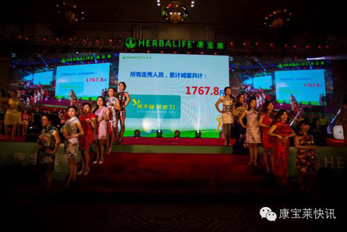 通过2015年的不断努力,不少小伙伴都成为了减重明星。晚会上,减重明星们为全场观众带来了运动、旗袍、礼服、泳装等风格的走秀,他们虽然不是专业模特,但在康宝莱“营养+运动”生活方式的熏陶下,都完成了美丽的蜕变。