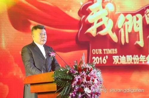 董事长潘晓非在讲话中明确提出了双迪的价值愿景和战略规划,并确立分三个阶段实现:第一阶段,用三至五年时间实现智造健康微环境目标;第二阶段,用五到七年时间实现构建大健康管理的目标;第三阶段,用七到十年时间形成与全球五亿人互动的健康生态圈目标。双迪将创新营销模式,通过“一体两翼,跨界经营,产融结合,双驱发展”,最终实现“四化”,即“产品金融化,使产品同时具有商品和金融二元属性,衍生消费增值的金融产品;消费资本化,把消费者从产业链的末端提到前端,把消费者变成投资者,让消费资金变为投资资本;合伙股权化,颠覆传统的生产关系,整个产业链利益相关者都成为合伙人,实现风险共担,利益共创、共享;企业证券化,即企业进军资本市场,成为公众公司”,让双迪人共享发展红利,共创宏伟蓝图。