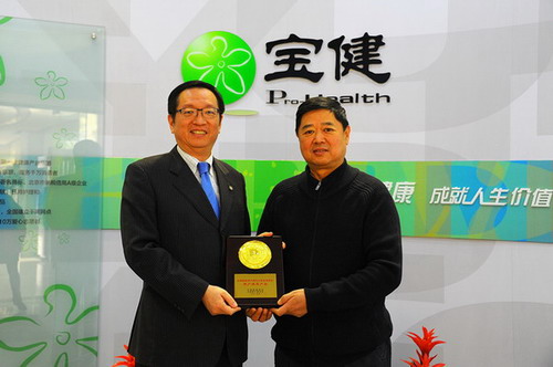 白秘书长对宝健的企业文化、产品生产过程进行详细考察后,对宝健产品质量给予高度认可,并代表全国用户向宝健颁发“全国实施用户满意工程先进单位-用户满意产品”奖项。