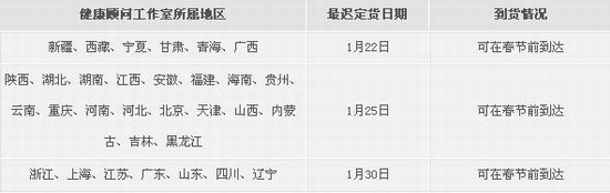 1、超过表中时间订货,不能确保所订货物在春节前到达,县(镇)级地区的工作室因到货时间比较慢,请各健康顾问工作室根据自身情况及时做好订货准备;