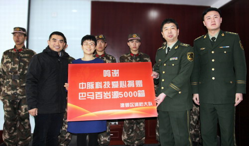 致敬消防官兵 中脉捐赠5000箱百岁源山泉水