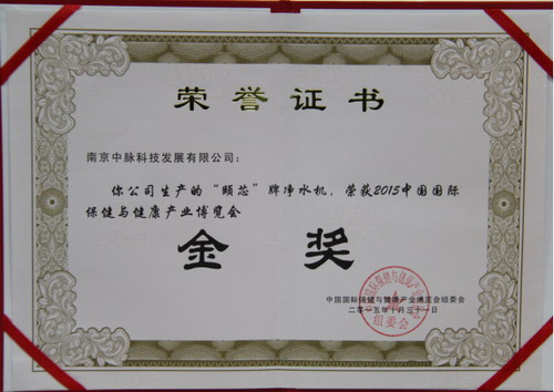 据悉,在大连举行的第五届中国国际保健与健康产业博览会上,经过众多专业人士和消费者的推荐,中脉“颐芯”牌净水机以其完美的设计、高端的品质无可厚非地荣获金奖。