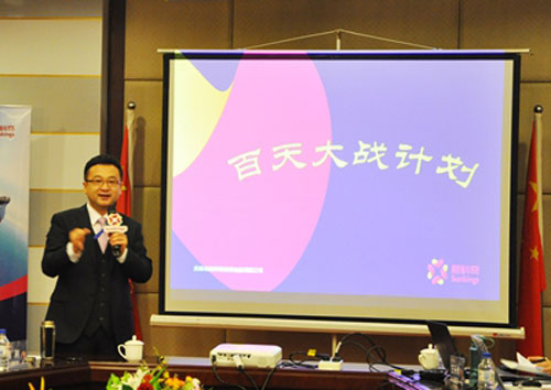 百天大战计划由业务部总监高耸精彩呈现。激动人心的计划方案,吸引了顾咨委员们的目光,大家纷纷拿起手机,记录下这精彩的一刻。