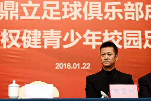 束昱辉董事长是盐城人,一直希望能为家乡在各方面做出贡献。作为天津权健足球俱乐部董事长兼总经理,对家乡足球事业的支持,更是责无旁贷。他听说家乡拥有了第一支职业足球俱乐部——盐城鼎立足球俱乐部之后,感到非常高兴。他更希望通过家乡职业足球的发展,带动家乡青少年校园足球的发展。
