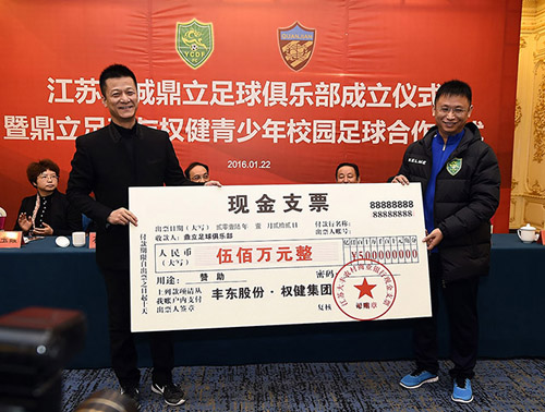 “丰东股份”对江苏盐城鼎立足球俱乐部给予赞助支持