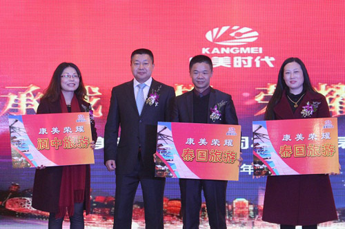 蒋总代表公司为获得旅游奖励的业务伙伴颁奖