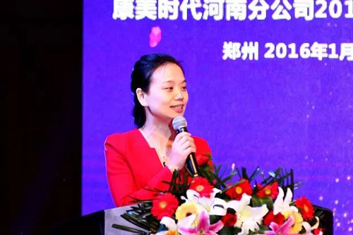 副总经理张丽君祝贺河南市场在2015年取得了优异的成绩,并希望在辉煌成绩基础之上,大家在2016年继续和公司团结一心,抓住契机,再接再厉,以今天的成绩作为新一轮征程的起点,和康美一起共同成长、分享成功、再创佳绩!张总的讲话得到了河南广大业务伙伴的强烈认同,大家纷纷表示,在2016年将毫不懈怠、全面提升、开创新纪元。