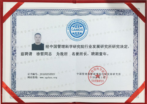 近日,经过中国管理科学研究院行业发展研究所的细心筛选及严格审核,新科奇Sunkings产业集团董事长徐哲先生凭借出色的个人魅力、优秀的管理能力及高效创新的行业运营理念,被中国管理科学研究院行业发展研究所聘为名誉所长,聘用证书编号:2016ZGYSZ023。