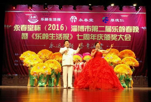 由山东永春堂集团独家冠名,厚德仁健康联盟、山东老年旅行社淄博分社、古井贡酒协办的“永春堂杯”(2016)淄博市第二届乐龄春晚暨《乐龄生活报》七周年庆颁奖大会,于1月21日在淄博剧院成功举办。
