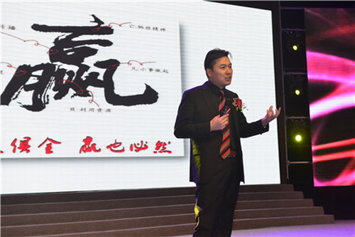 三生(中国)黄金宝董事长为大会致辞,感谢大家一年的辛勤付出