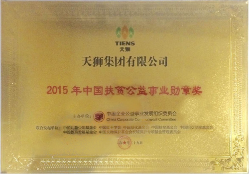 2016年1月29日,“2015中国企业-公益勋章峰会”在北京中国大饭店隆重举行,经评委会严格审定,天狮集团荣获“中国扶贫公益事业勋章奖”荣誉称号。