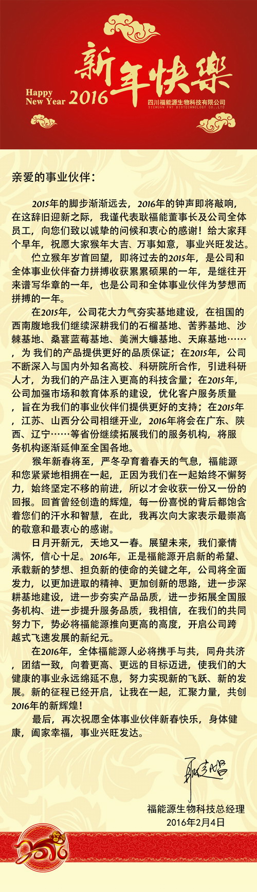 耿越昌新春贺词:福能源将继续拓展服务机构