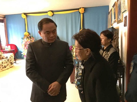满怀着对阎老的深情厚谊,黄总首先向阎老的遗像三鞠躬,并对阎老的逝世表示沉痛哀悼,向阎老的夫人李文辉同志表示亲切慰问。黄总表示,阎老曾于2010年为公司司歌《新时代进行曲》作词,并在之后多次出席公司的大型活动,对公司的发展给予了极大的关怀和帮助,新时代人对德高望重的阎老也怀有非常深厚的感情。阎老病重期间,公司王宁总监也曾到医院看望慰问。