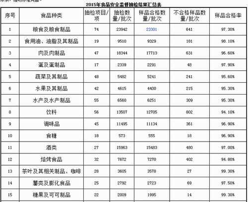 2015食品安全抽检结果 保健食品合格率96.50%