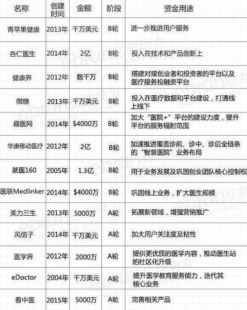 2015年医疗产业融资一览