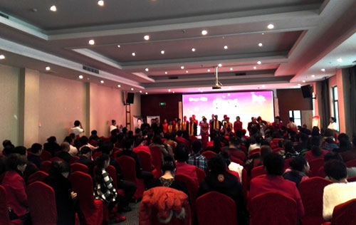 与会人员有隆力奇高级经销商刘玉荣、栾翔、于渼凝,隆力奇直销中国区北区总监李大坤,开场以一曲好日子为本次会议拉开序幕,伴随着歌曲的高潮全体与会人员齐唱今天是个好日子,预示着2016年我们必定收获满满。李大坤总监对于16年隆力奇公司利好消息的发布、全线升级的产品以及新产品的发布使会议再掀高潮,奔驰车的奖励政策更是让在场人员信心百倍。