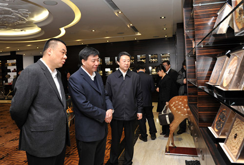 本溪市副市长黄力强、杨军生,本溪市农委主任孙福洲,本溪高新区管委会主任魏志辉,桓仁县副县长朱祥林,本溪高新区招商局局长王华,北京澳地森公司董事长潘德民,辽宁圣草山参科技公司董事长曲文阁,本溪中西医结合医院董事长周洪英陪同考察。康美药业董事长、总经理马兴田,副董事长、常务副总经理许冬瑾,副总经理韩中伟,康美新开河公司总经理马焕豪,康美电商公司总经理廖开际,总经办副总经理唐煦热情接待。