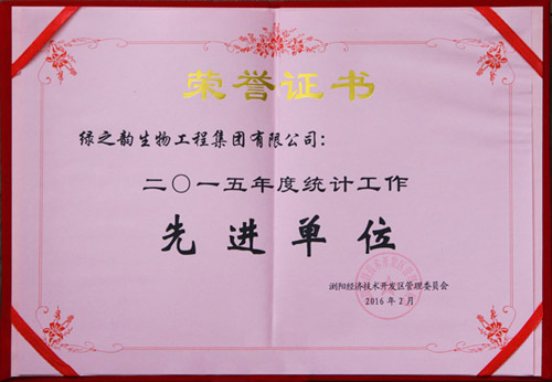 绿之韵喜获“2015年度税收贡献奖”荣誉称号