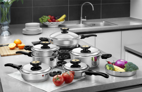 据了解,中脉唯食帮生态厨具属美国原装进口,具有安全、健康、节约、实用等卓越品质。该锅具的锅体采用304L医用不锈钢,做到减油少油;拥有低温免水煮食专利,可以为食材多保留30%营养;采用独特的凹面锅体设计,5层锅底高压复合一体,导热均匀,节能省时;采用了卷边技术与蒸汽阀设计,使用更方便;产品来自美国原装进口,保证了品质的传承。