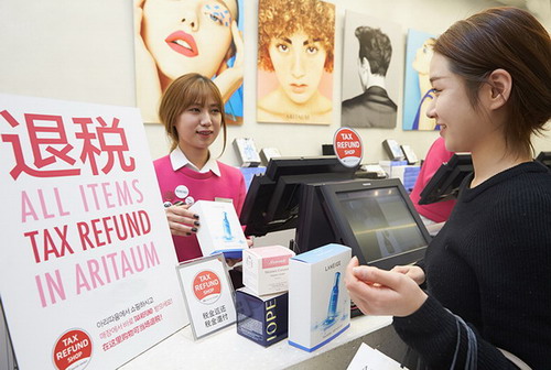 2月4日起主要商圈内的ARITAUM、兰芝、悦诗风吟、伊蒂之屋实施即时退税制,为外国游客提供购物便利。
