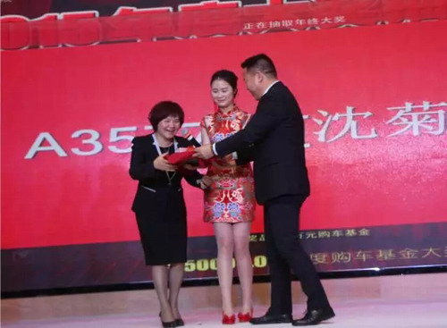 会议中还进行了2015年度“喜满家大健康购物商城”购物大抽奖,会议现场的一位家人幸运的成为了一等奖的获得者,获得了5万元的购车基金奖励。